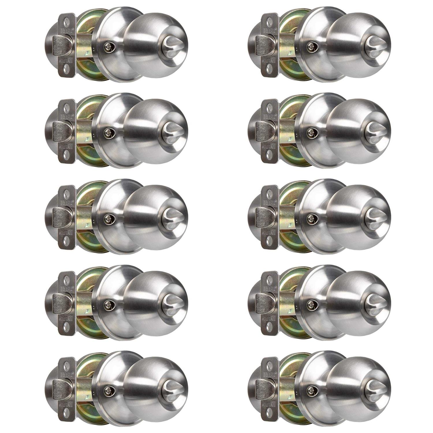 Ilyapa Privacy Door Knob for Bed/Bath Ball Satin Nickel Interior Keyless Turn Thumb Locking Round Door Handle