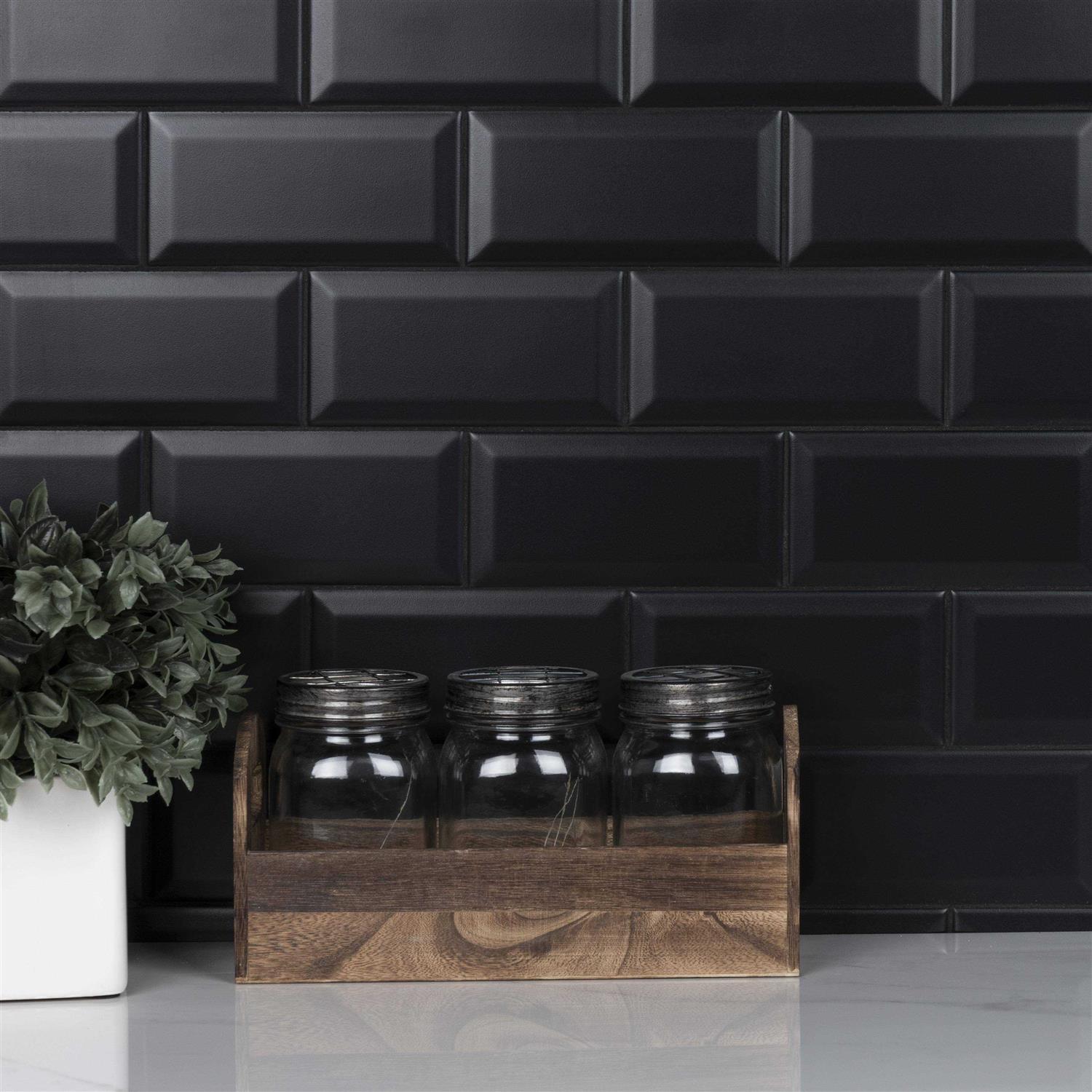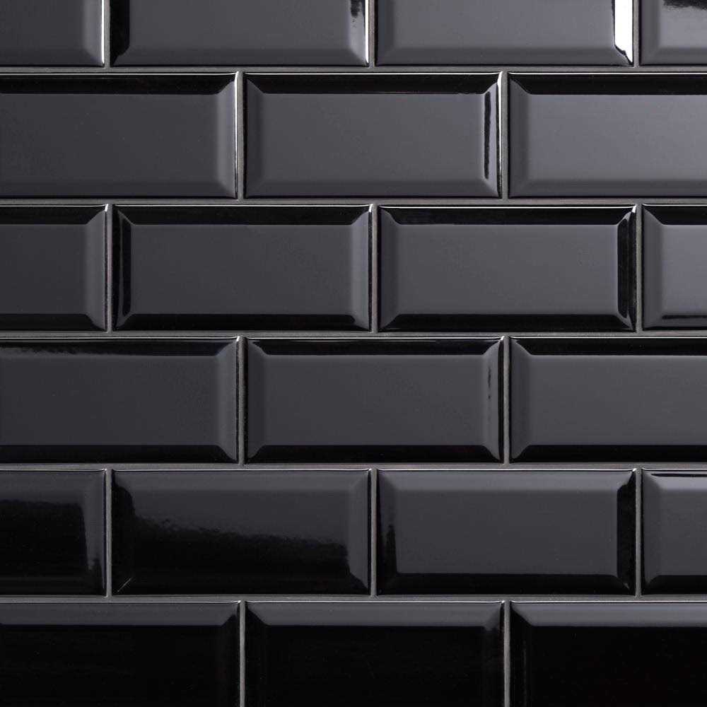 Merola Tile Crown Heights Beveled Glossy Black 3 in. x 6 in. Ceramic Wall Tile