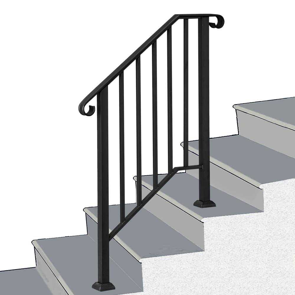 Metty Metal Hand Rails for Outdoor Steps Wrought Iron Stair Railing Set for 1 to 5 Step
