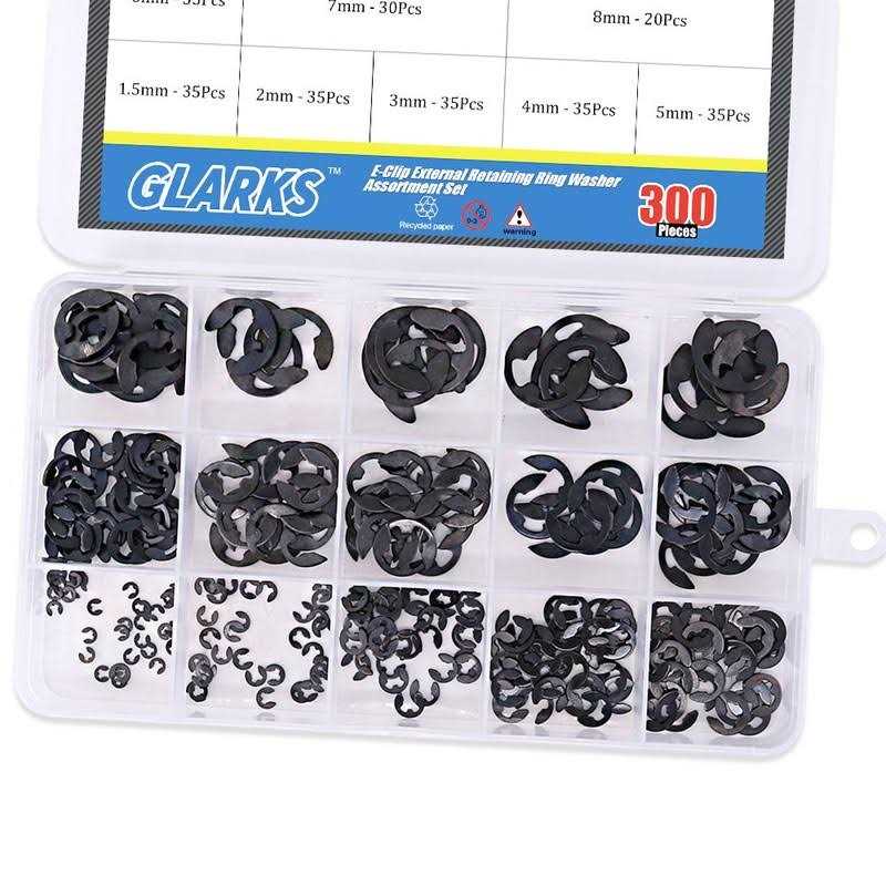 Glarks 300-pieces 10 Size Black Alloy Steel E-clip External Retaining