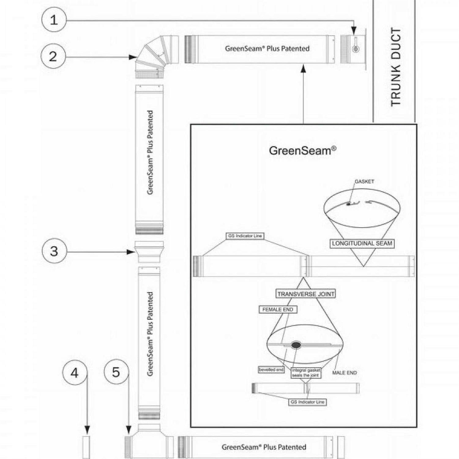 Greenseam 90 Degree Elbow 12 Duct Size MPN:GRAE1290GA26