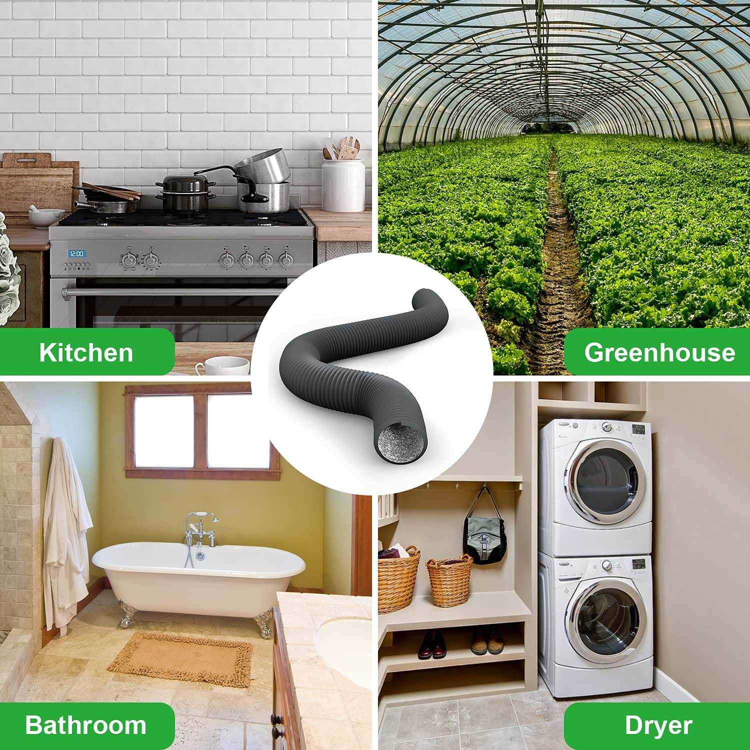Ipower Flexible 8 Inch 25 Feet Aluminum Ducting 4 Layer Protection Dryer Vent Hose for Hvac Heating Cooling Ventilation and Exhaust