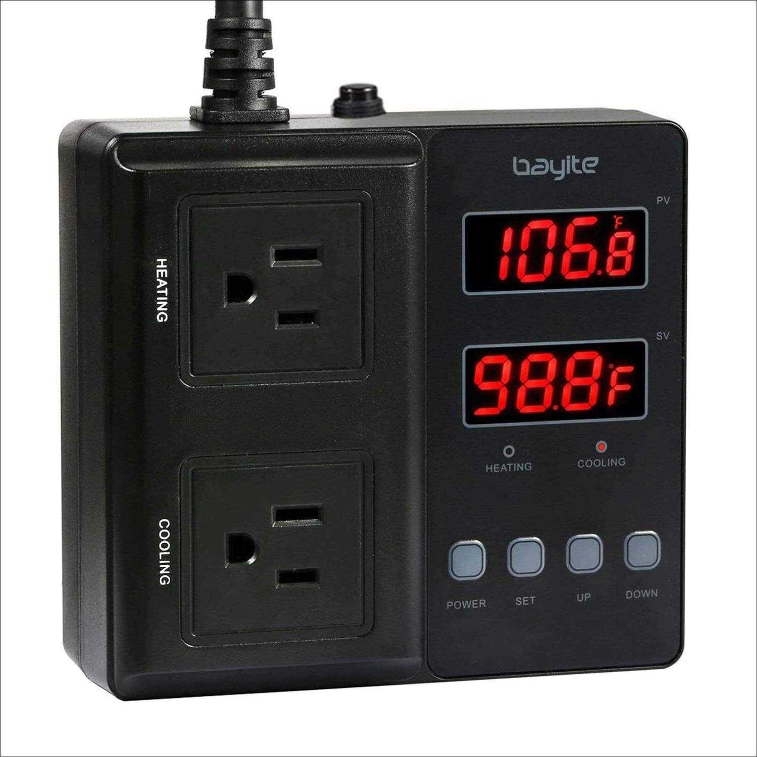 Bayite Temperature Controller 1650W 15A BTC211 Dual Digital Outlet Thermostat Plug, Pre-Wired, 2 Stage Heating and Cooling Mode