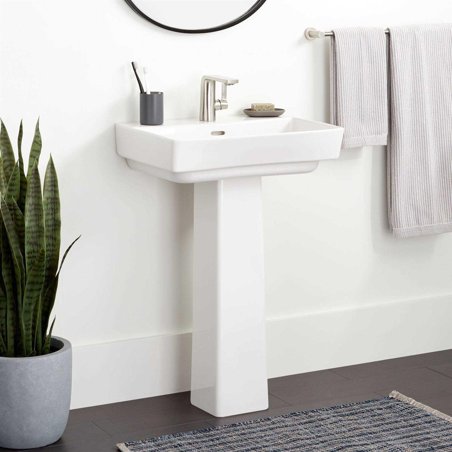 Signature Hardware Pennfield 24 Specialty Vitreous China Pedestal Bathroom Sink with Overflow and Faucet