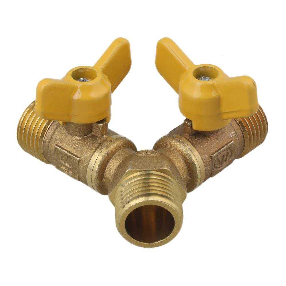 Solid Brass Y Ball Valve 3 Male Thread with Comfort Grip for Oil and Gas Hoses Connector Splitter Adapter