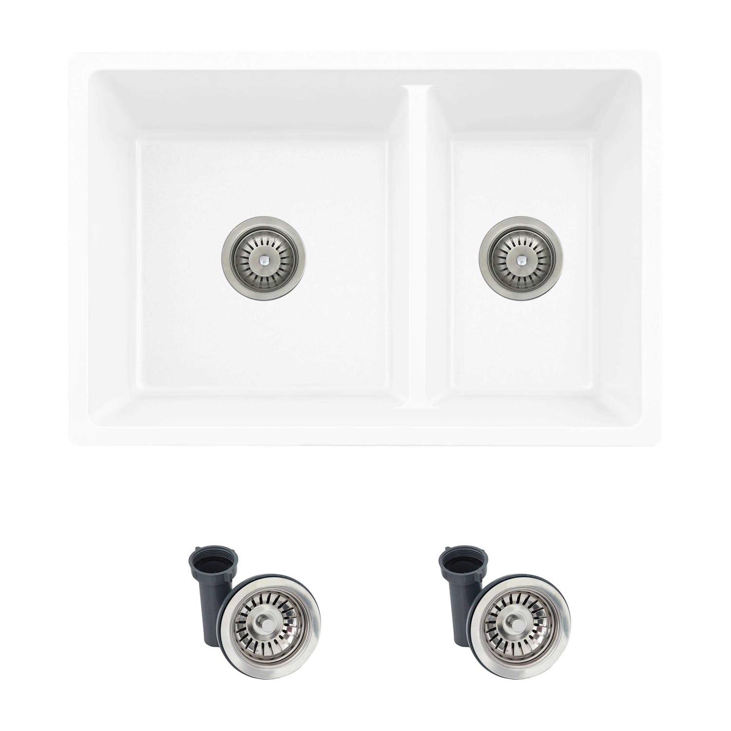 Stylish S-827H 27 inch Dual Mount 60/40 Double Bowl Composite Granite Kitchen Sink with Strainer