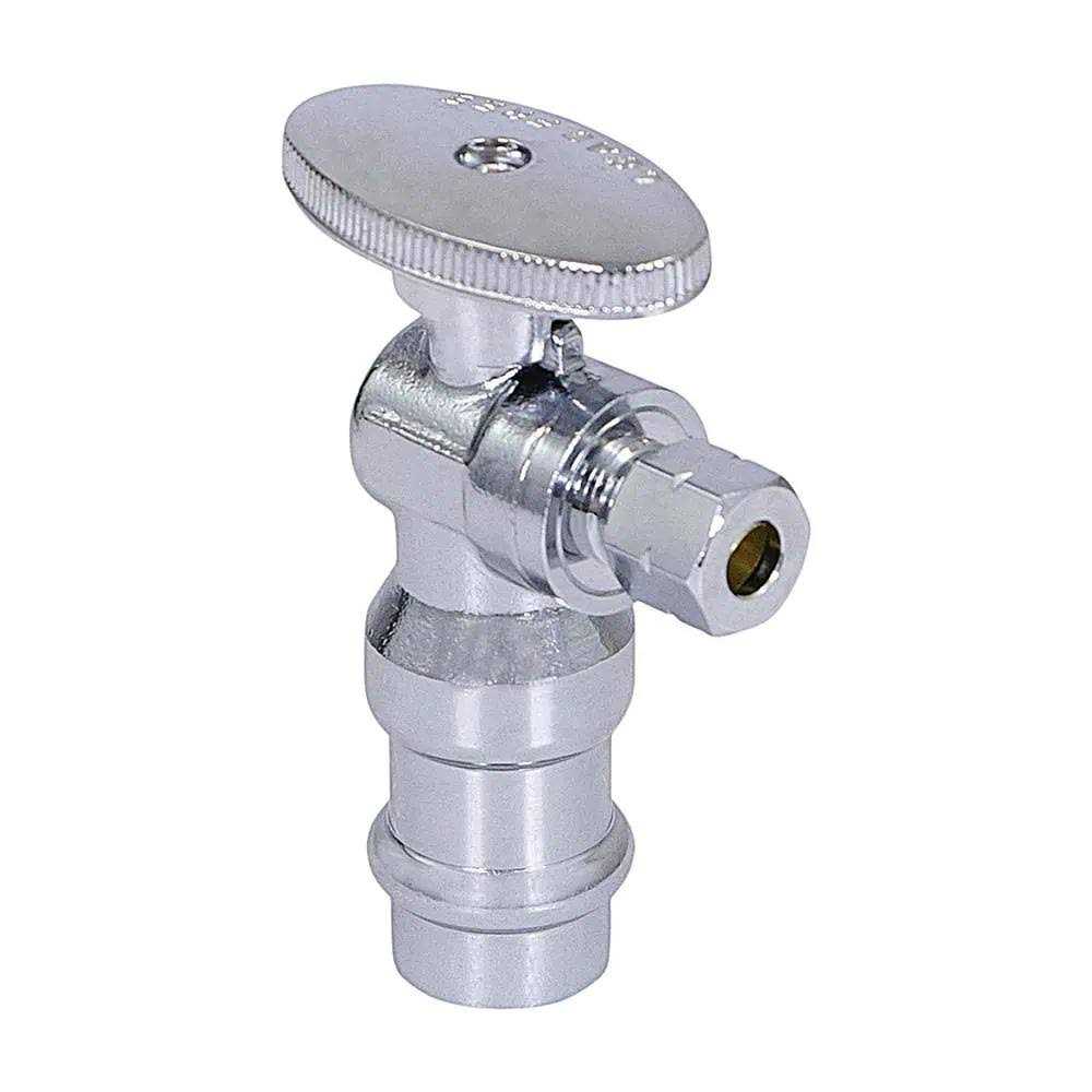 The Plumber’s Choice 1/2 in. Press x 1/4 in. O.D. Chrome Plated Brass 1/4 in. Turn Press Angle Stop Valve