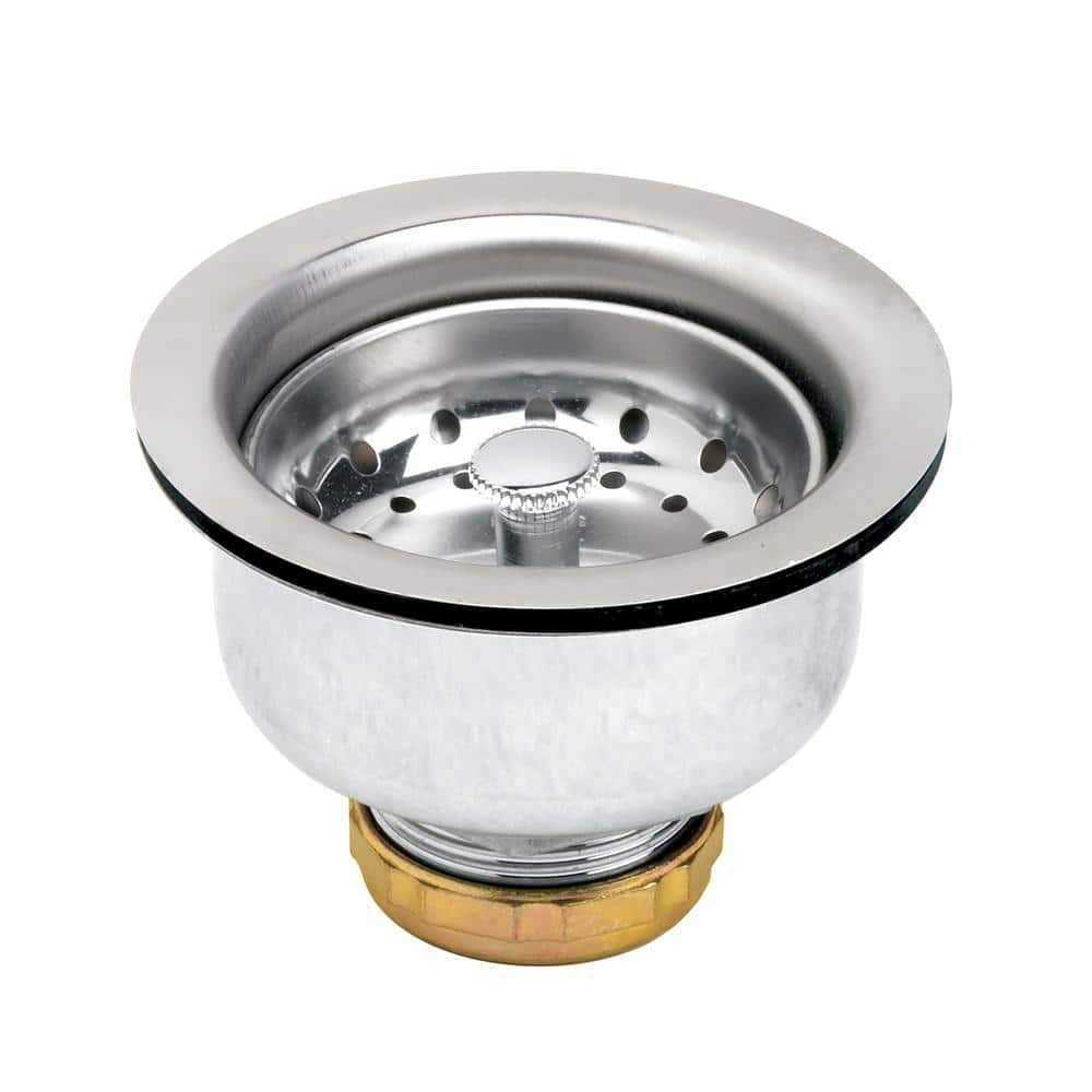 The Plumber’s Choice 3-1/2 in. 4 in. Kitchen Sink Stainless Steel Drain Assembly with Strainer Basket Stopper Double Cup Design