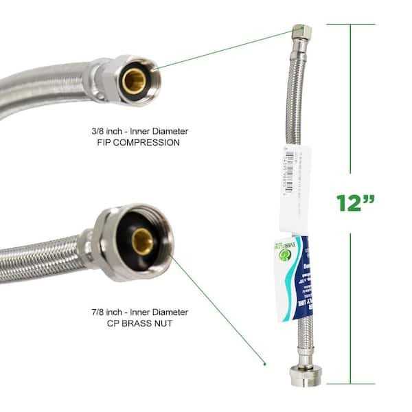 The Plumber’s Choice Toilet Connector Water Line 3/8 in. x 7/8 in. Female Compression Brass Nut Toilet Supply Line 12