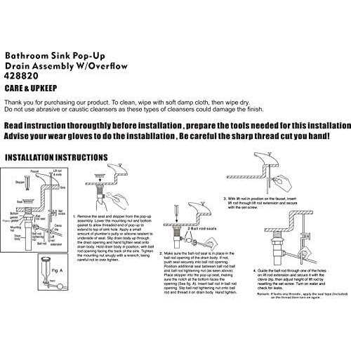 Artiwell Sink Pop-Up Drain Stopper Assembly with Lift Rod and Overflow