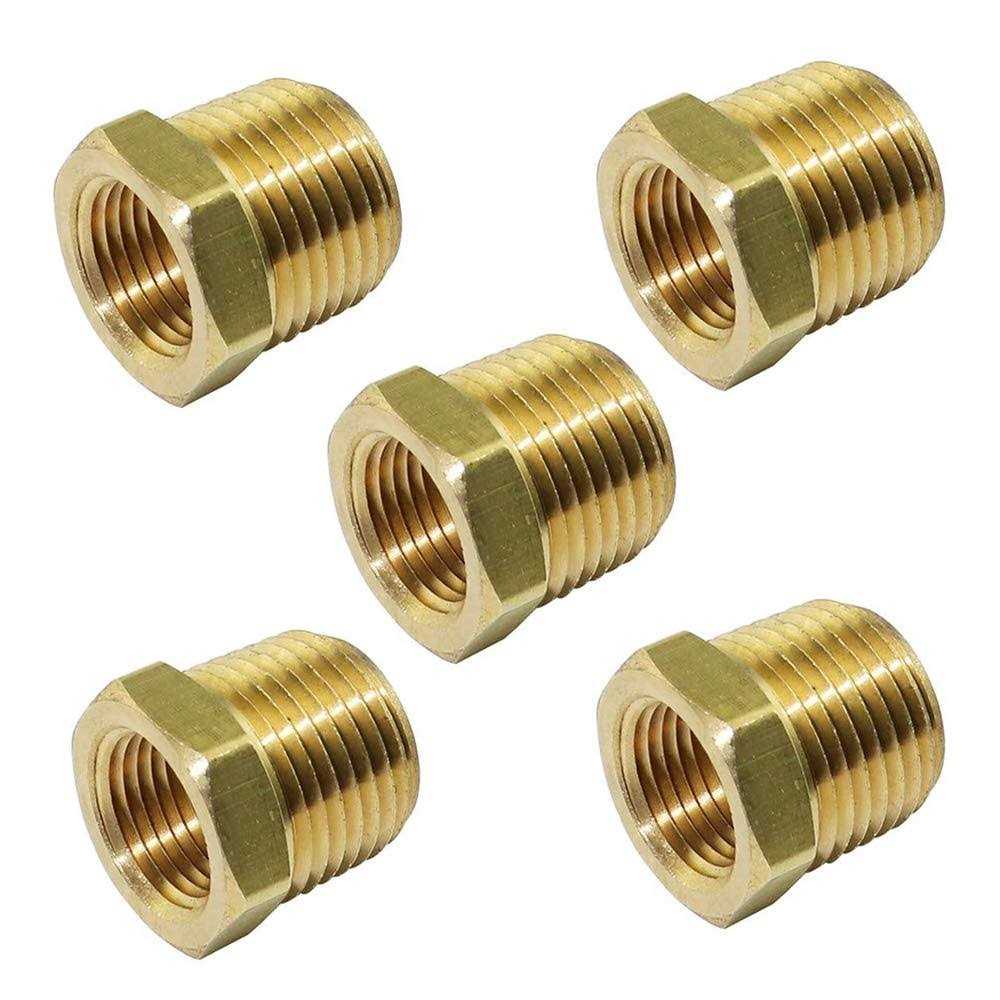 TL TOOLEGIN 1/2 NPT Male x 1/4 NPT Female Brass Bushing Reducer Reducing Pipe Adapter Fitting 5pcs 1200 PSI