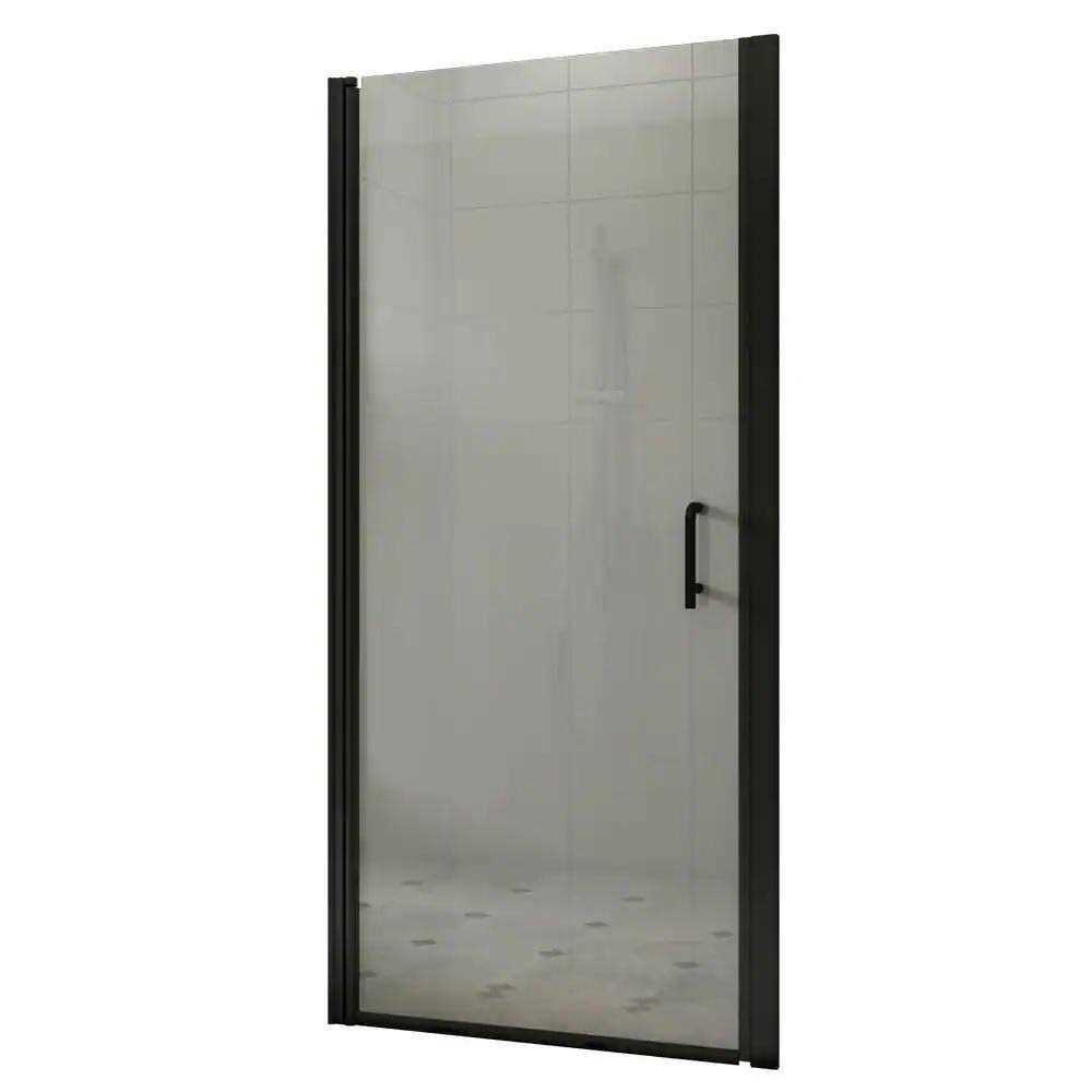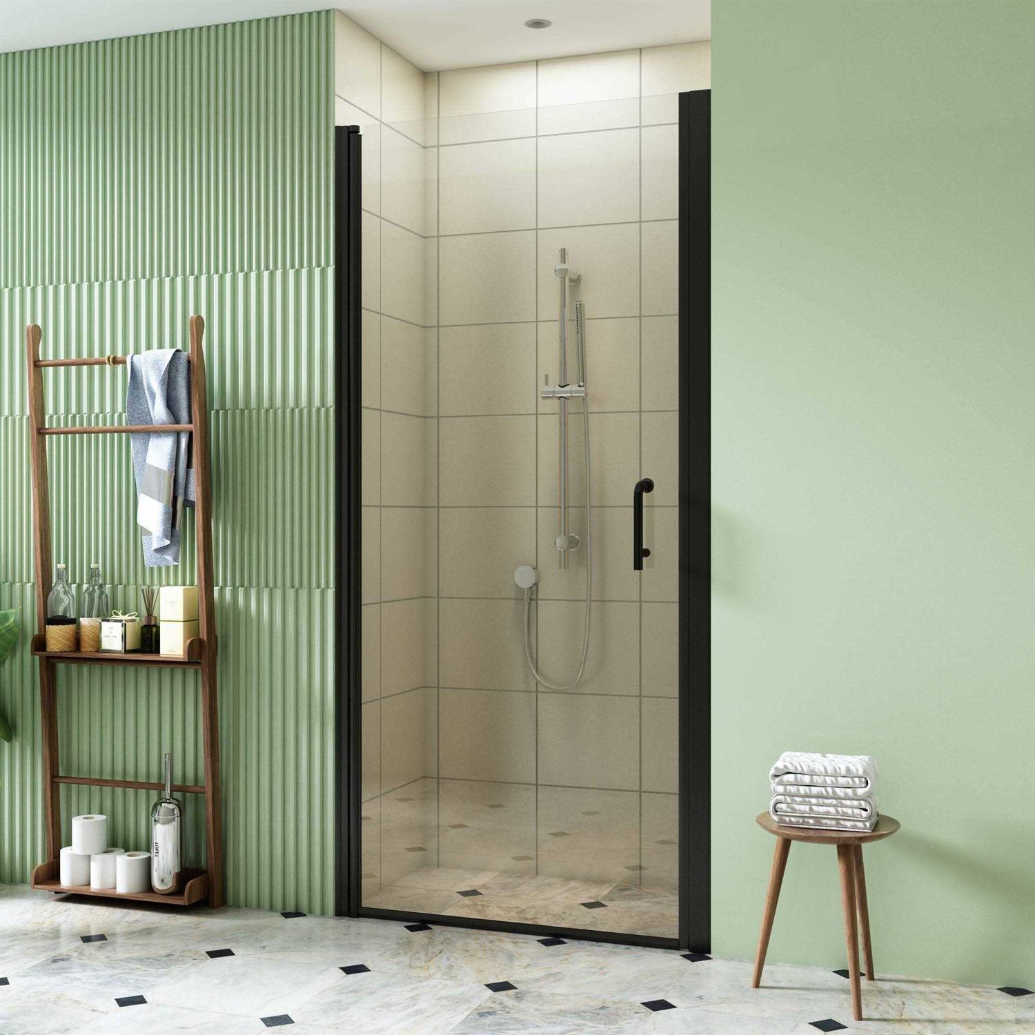 TOOLKISS 34 to 35-1/2 in. W x 72 in. H Pivot Swing Frameless Shower Door in Black with Clear Glass