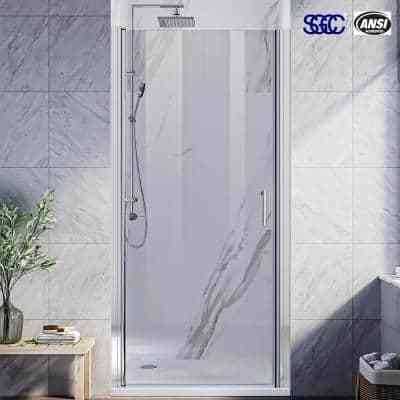 TOOLKISS 72 in. H Pivot Swing Frameless Shower Door in Chrome with Clear Glass