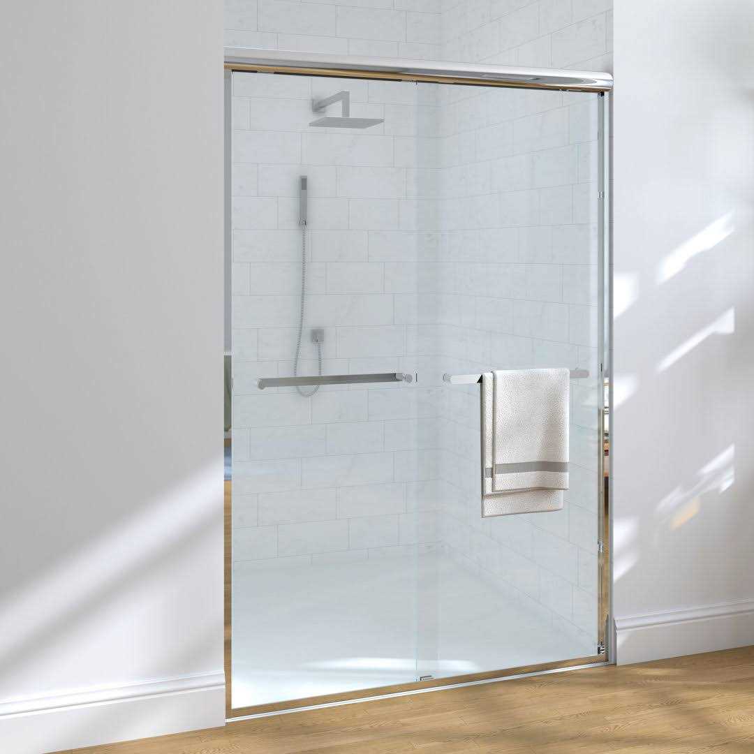 TOOLKISS 48 in. W x 72 in. H Sliding Semi-Frameless Shower Door in Chrome with Clear Glass B020-4872CC