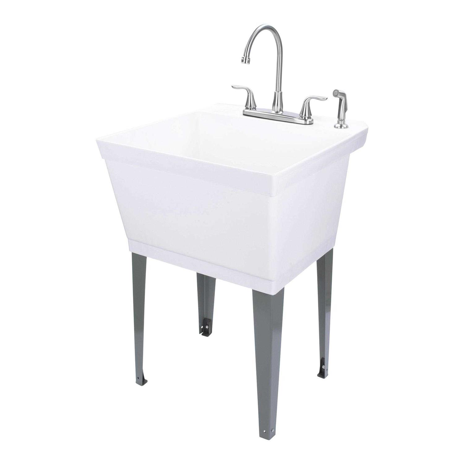 tosestores Complete 22.875 in. x 23.5 in. White Utility Sink Set with Metal Hybrid Stainless Steel High Rise Faucet Side Sprayer