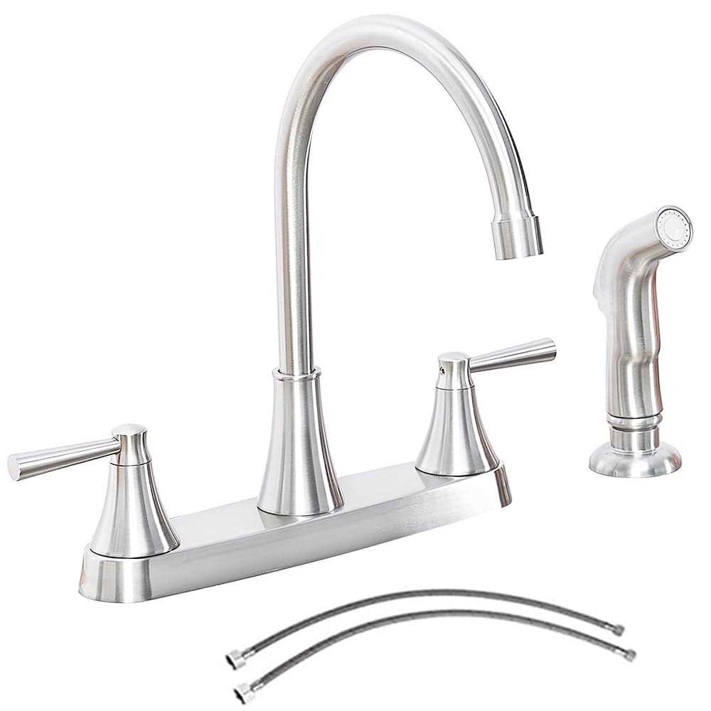 Vsunhoo Kitchen Faucet with Sprayer, Brushed Nickel Kitchen Sink Faucet, 3 Hole or 4 Hole Rv Faucet for Kitchen Sink