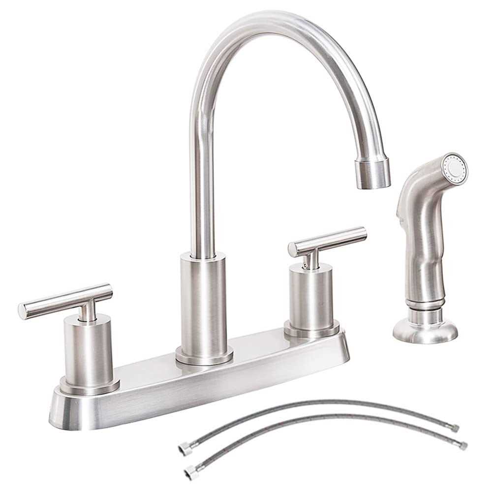 Vsunhoo Kitchen Faucet with Sprayer Brushed Nickel Stainless Steel 3-Hole RV Utility Touch Kitchen Faucet with Side Sprayer