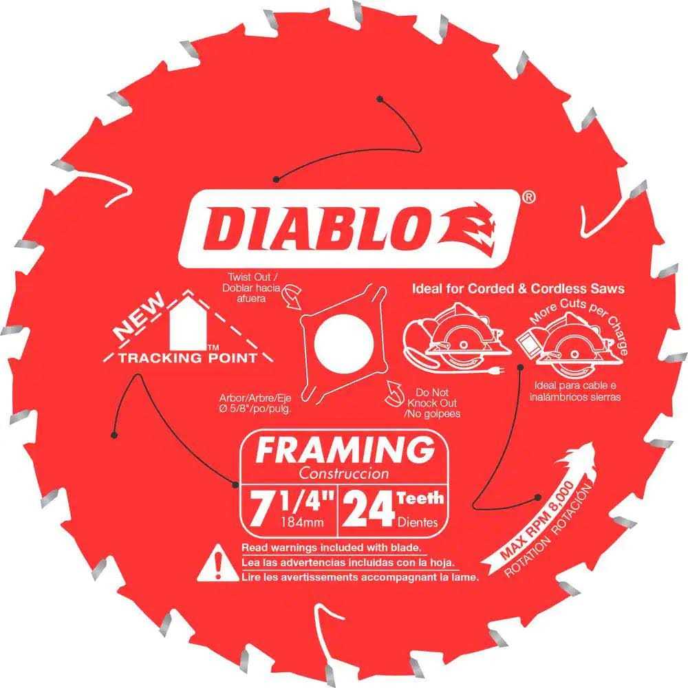 Diablo 7-1/4 in. x 24-Teeth Tracking Point Framing Saw Blade D0724W