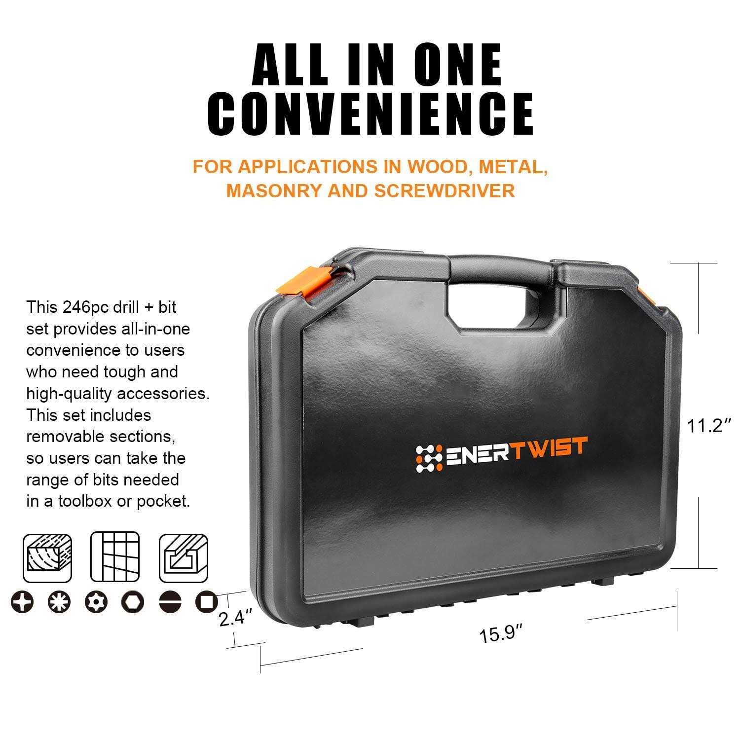 EnerTwist Drill Bit Set, 246-Pieces Drill Bits and Driver Set for Wood Metal Cement Drilling and Screw Driving