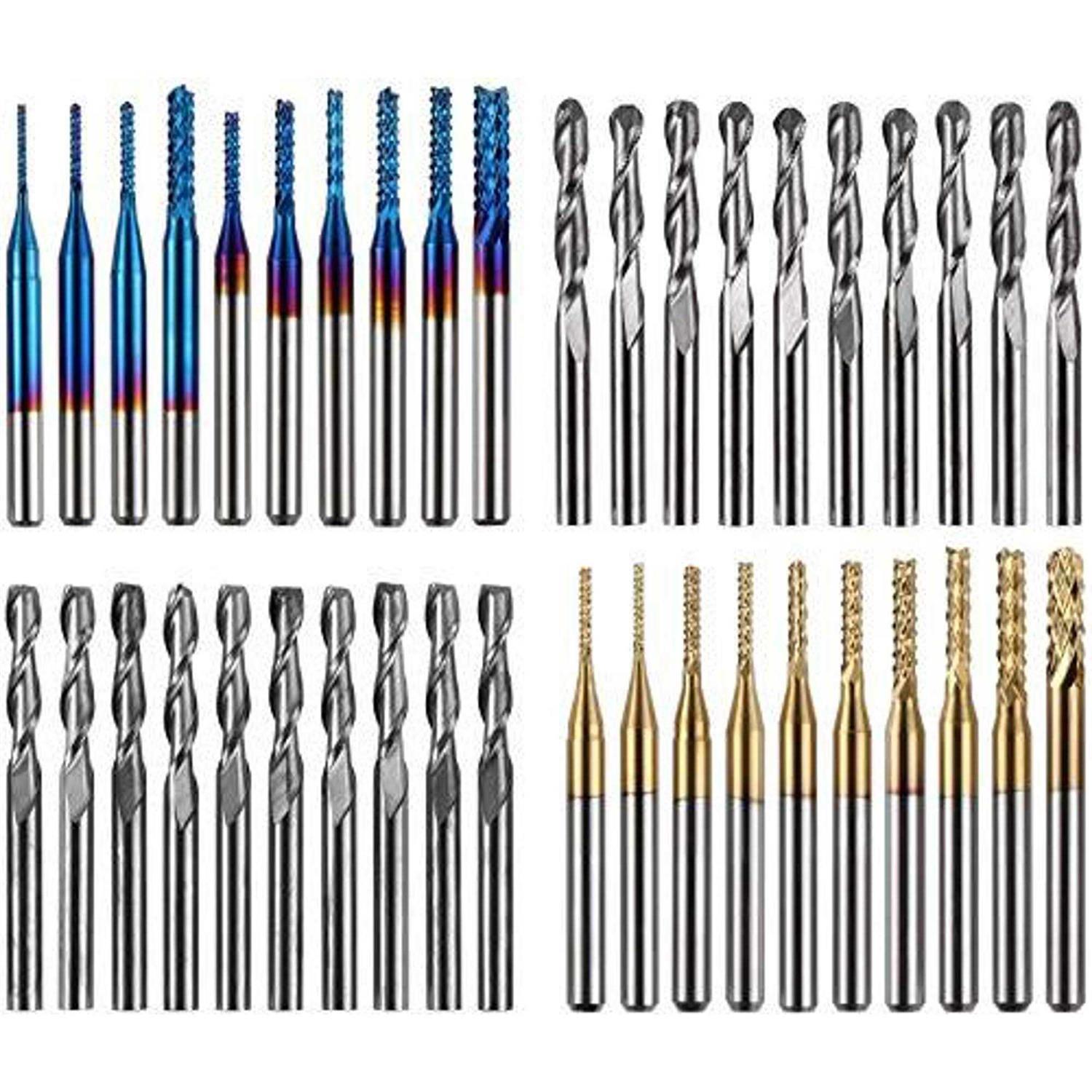 Genmitsu 40pcs End Mills CNC Router Bits 1/8 Shank CNC Cutter Milling Carving Bit Set Including 2-Flute Flat Nose & Ball Nose