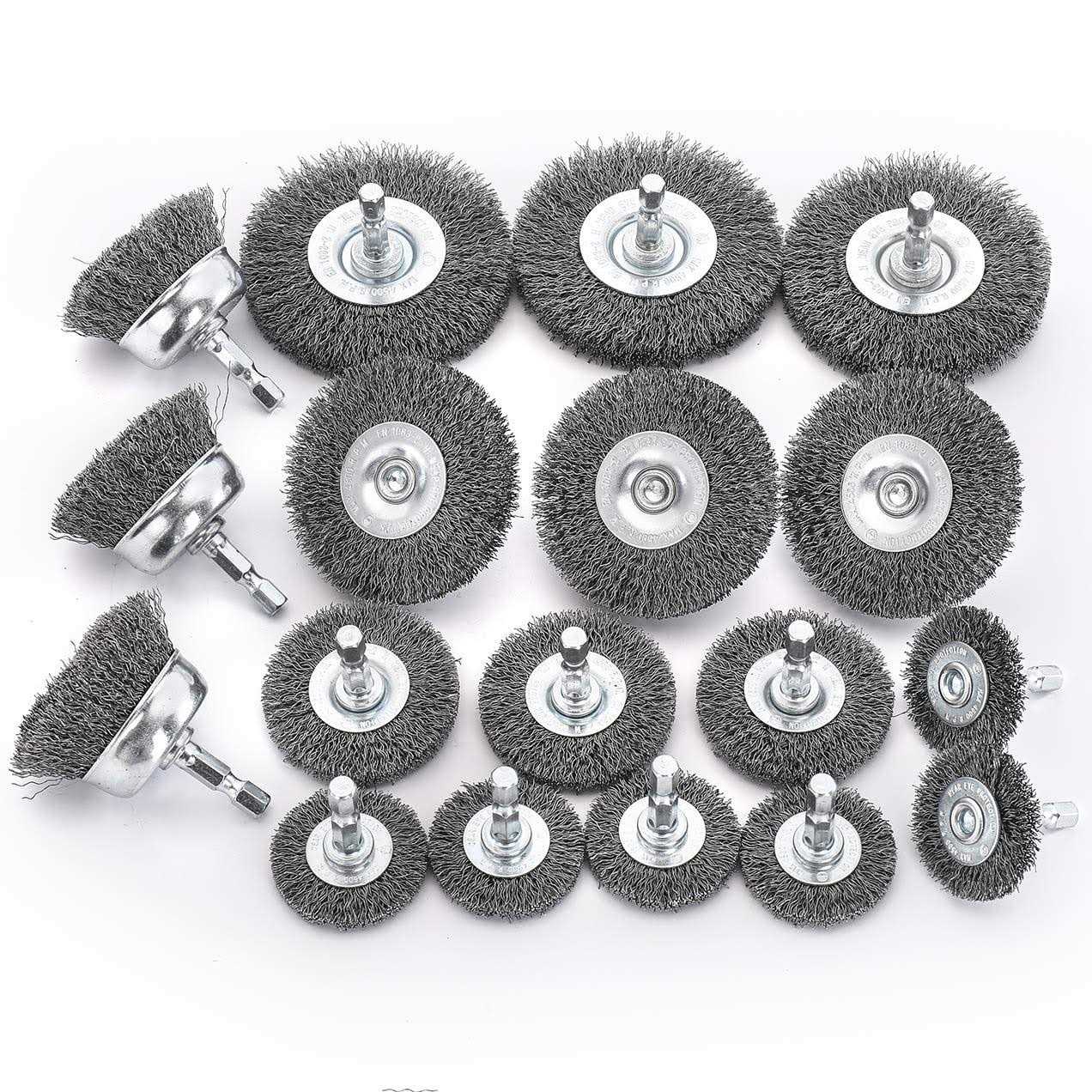 Hoyin-18pc Wire Wheel Cup Brush Set|Coarse Crimped Carbon Steel|1/4In Hex Shank|for Drill