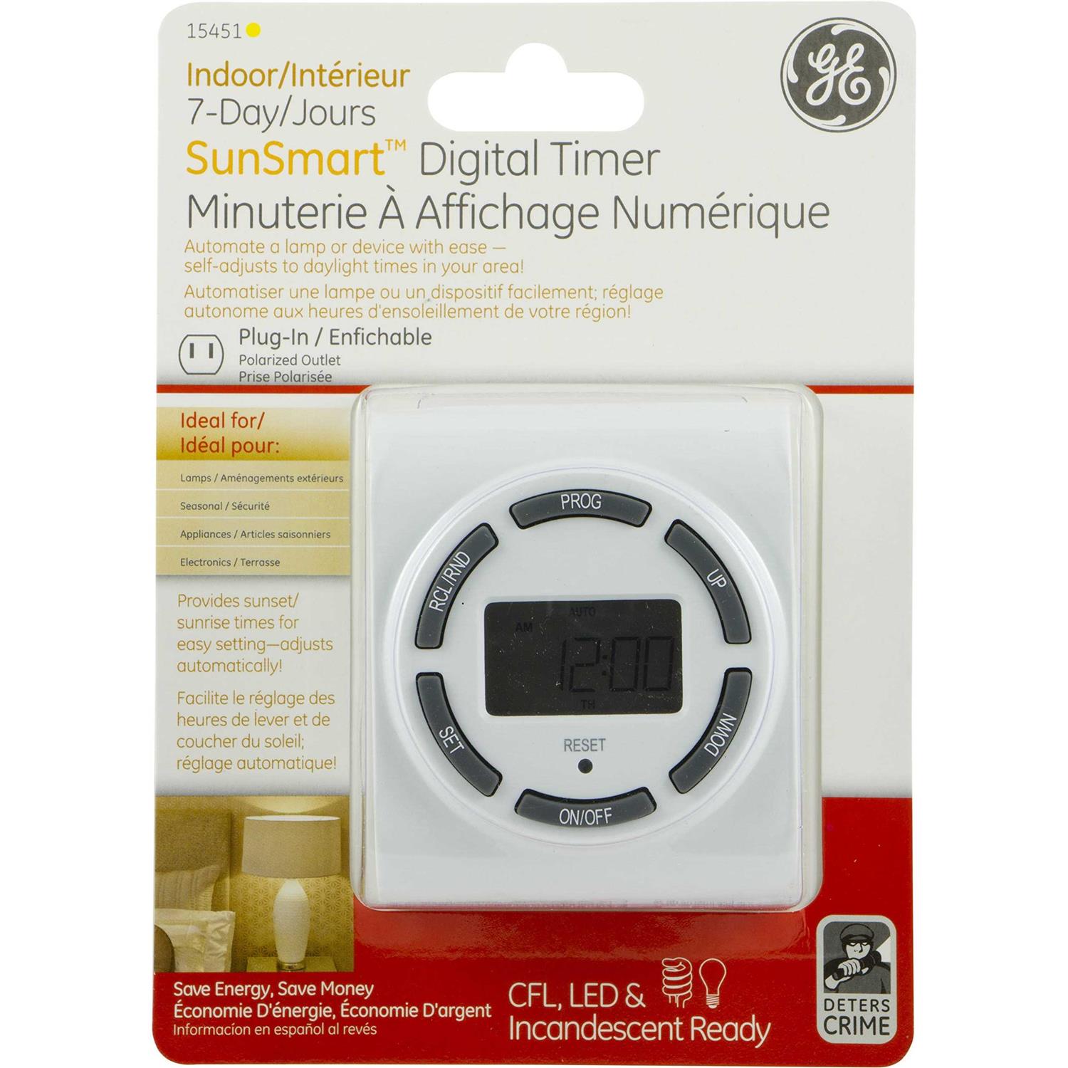 GE 15451 Indoor Seven-Day SunSmart Polarized Plug-In Digital Timer