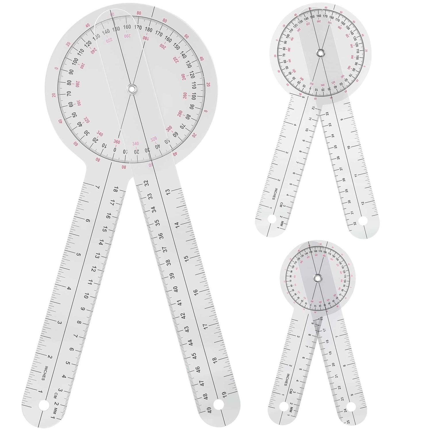 Goniometer Set 3 Pieces of 6/8/12 Inch Occupational Physical Therapy Protractor Tool Measurement Angle Ruler Kit Plastic 360 Degree Universal