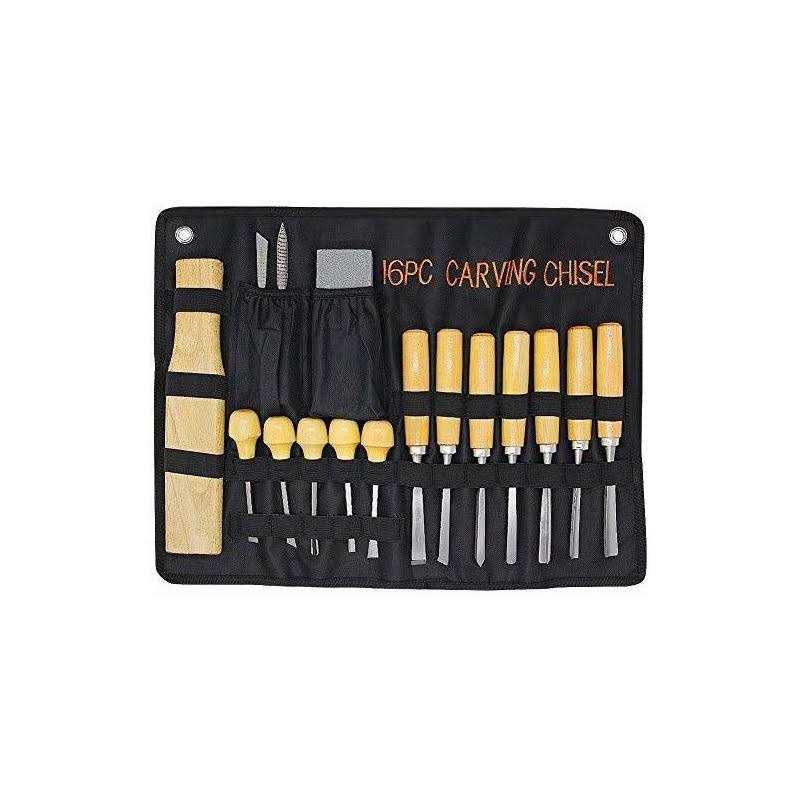 Lulu Home Wood Carving Tools 16PCS Professional Carving Knife Tool Set for Woodworking Premium Wood Handle with Chisel Gouge Whetstones