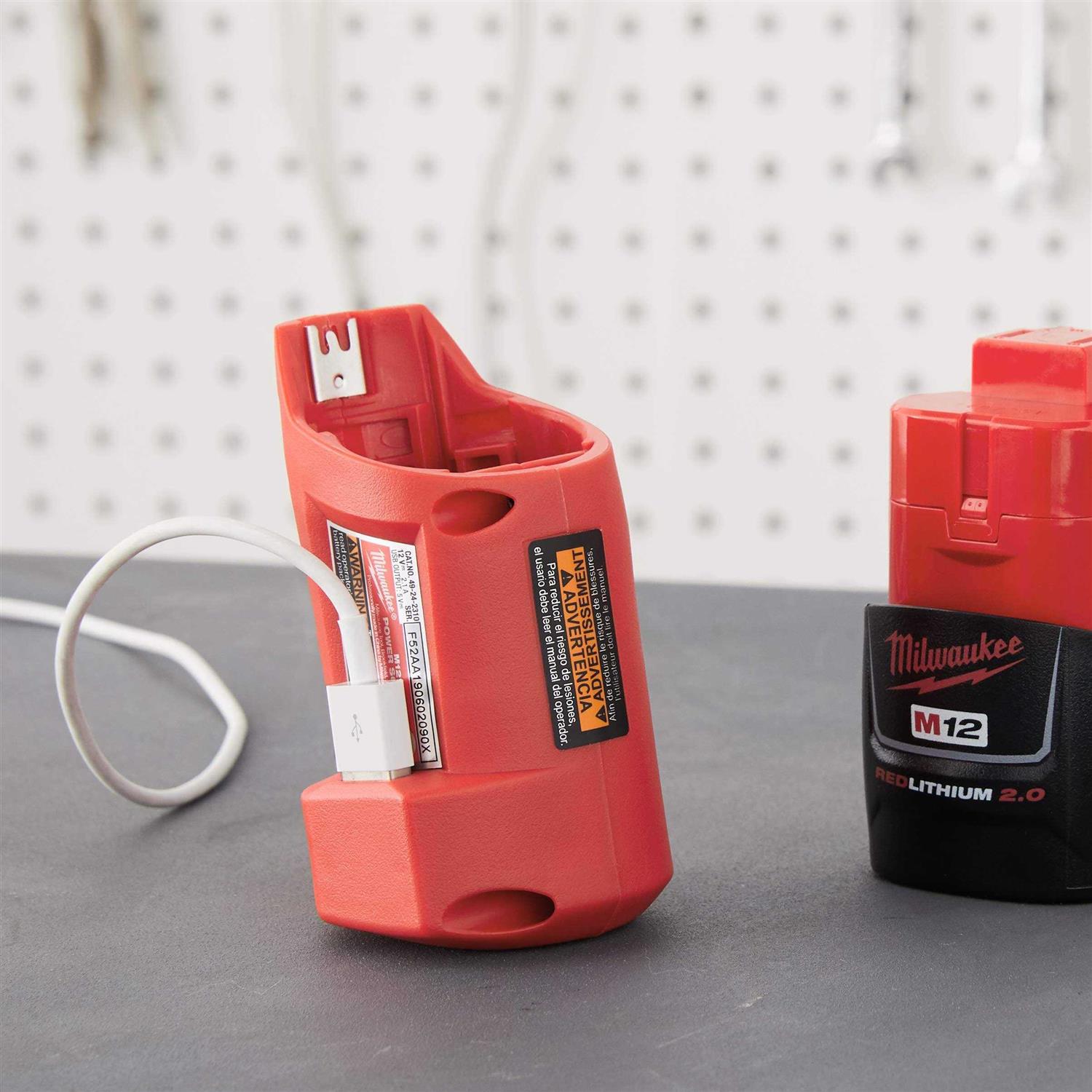 Milwaukee Tool M12 Redlithium Rechargeable power source in red color, is suitable for use with smartphones, tablets and other portable electronic devices. It has a nominal voltage rating of 12-Volts and requires a charge current of 2.1-Amps. It measures 2-Inch x 2-Inch x 4-3/4-Inch. This power source has an on board fuel gauge. It has smart-charge port that identifies the electronic device that is being charged, delivering fast and safe charging. The power source is compatible with all M12 heated gear, providing up to 6 Hours of continuous heat on a single charge.