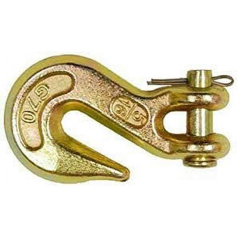 Clevis Grab Hooks are commonly used in load binding applications. Hooks are commonly attached to the end of a transport chain. When used with 5/16″ chain, the shallow throat opening allows for easy and secure connections and ensures that your chain won’t slip. Hook is stamped with “G70″ for easy identification and meets all DOT regulations for Grade 70 Transport when used with 5/16” Grade 70 Transport chain.