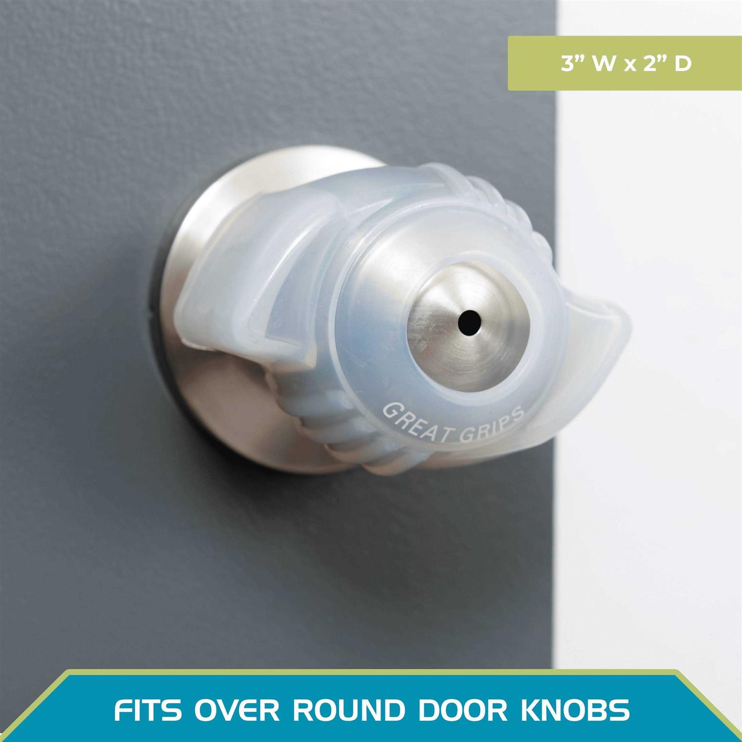 The EZ Door Knob Grips from Able Life make opening doors a breeze! Whether you’re a child, someone suffering from arthritis, or a senior citizen, many people struggle opening doors. Even busy parents with their hands full of groceries could use assistance opening doors. The EZ Door Knob Grips with their wing-tipped design make it possible to open your door with the touch of a finger. Why waste money on replacing all of your door knobs with expensive door levers when you could pay for a low-cost alternative? Installation is made easy. Just remove the grip from the packaging, run it under hot water for 30 seconds to allow it to expand, and work the grip over the door knob until it fits comfortably, covering the entire knob. The EZ Door Knob Grips also come accessorized with removable glow in the dark inserts to help you be able to find the door knob in the dark. It is also keyhole accessible so you can still use your key to lock and unlock your door.