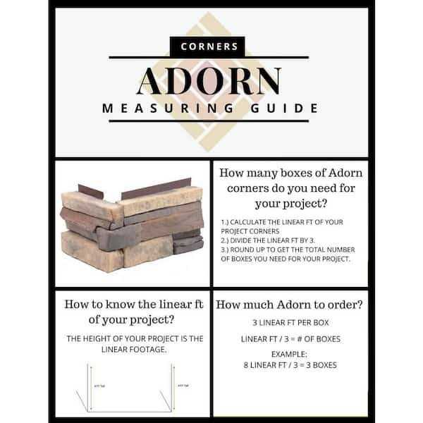 - Each box of Adorn corners comes with 6 sets of corners, equaling 3 vertical lineal feet