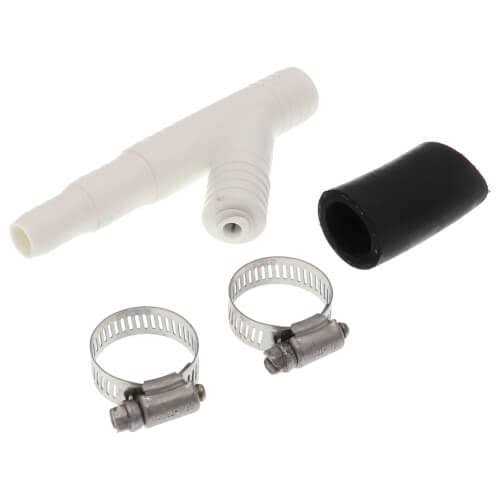 Hoses by Air Gap International. Details:The ET116-001 universal drain line adapter connects dishwasher drain outlet and RO drain line to garbage disposal. The ET116-001 provides a secure and code compliant connection to the garbage disposal drain line. The ET116-001 has a 7/8-inch outlet compatible with all garbage disposal units and is connected using provided 7/8-inch coupler hose. The inlet of the ET116-001 provides multiple barb connections to accommodate 1/2, 5/8, 3/4, and 7/8-inch hoses to accommodate any dishwasher outlet hose diameter. The ET116-001 is made from durable plastic with a barbed end that can be easily cut to accommodate multiple hose sizes. If the RO port is not used, it can be plugged with a 1/4-inch plastic dowel. The ET116-001 comes with all necessary parts for a quick and easy installation. That includes coupler hose, two stainless steel clamps, and the user guide. The design of the ET116-001 DLA eliminates RO gurgling sounds and provides a legal way to…