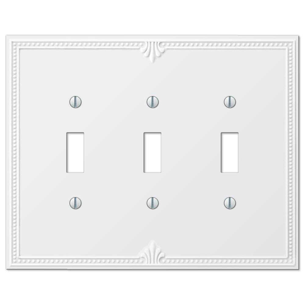 Manufactured by Amerelle, the leader in decorative wall plates and hardware. Made from high quality, beautiful Composite, this stylish wall plate does more than just cover electrical boxes, adding a simple elegance to your decor. Decorating with wall plates is an easy and inexpensive way to make an immediate impact in your home. They provide a charming upgrade to your standard plastic ones by adding a refined, decorative accent to any room in your house. Color: White.