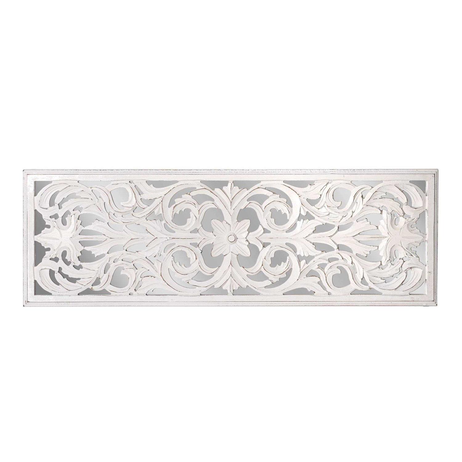 American Art Decor Distressed Reflective White Wood Wall Accent Medallion Panel – 12″x36″