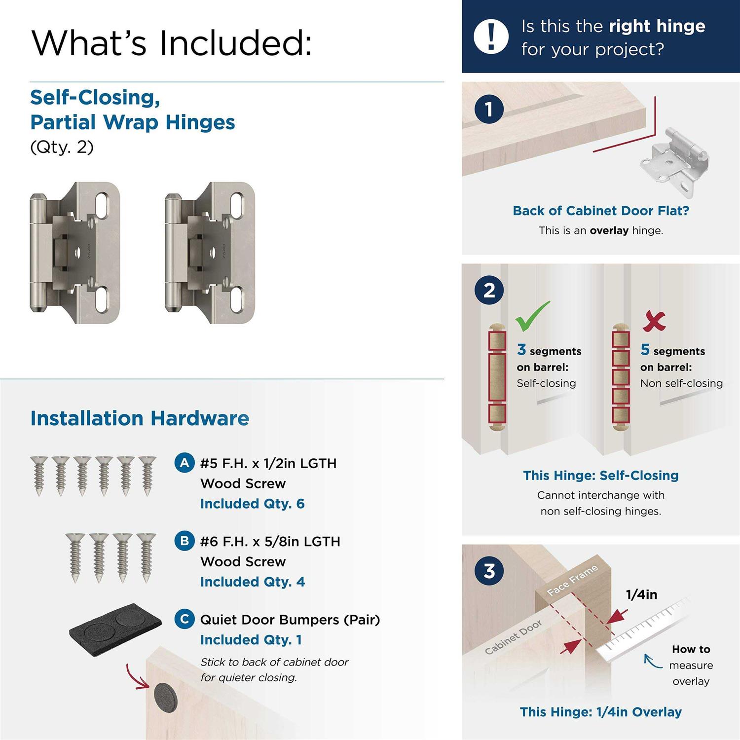Amerock Satin Nickel Self Closing Partial Wrap Overlay Hinge Pair, 1/4 in.