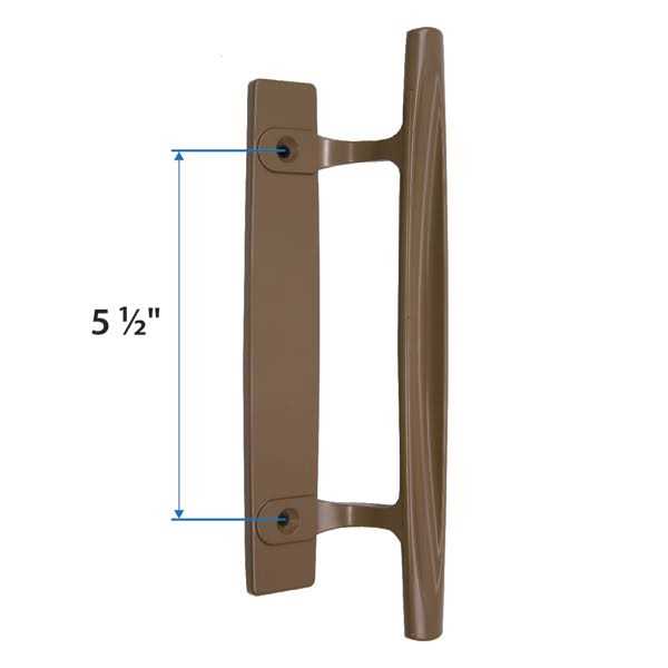 Interior handle for two or three panel Perma-Shield patio doors manufactured 1966 to 1999 Can also be used on two and four panel Frenchwood gliding doors Stone color 200 Series and 400 Series gliding patio door handles have mounting bolt holes 5 1/2″ on center, making them interchangeable Handle bolts are sold separately | Andersen Windows Gliding Patio Door Handle, Stone Size 5 1/2 inches | 1997201