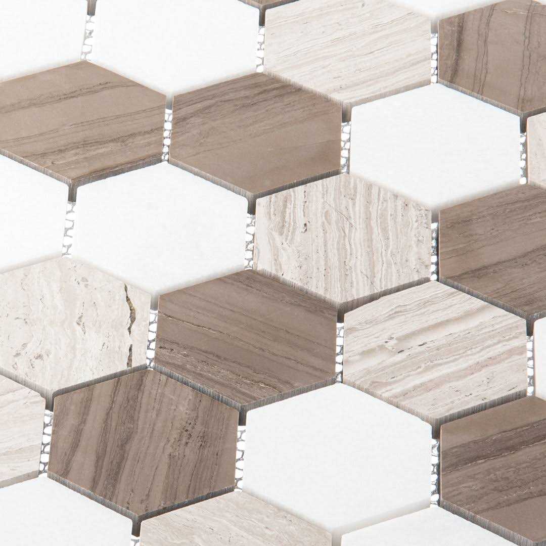 Andova Channing Baskit Hex Matte Tan White 12 in. x 12 in. Geometric Natural Stone Mosaic Wall & Floor Tile (4.85 Sq. ft./Case)