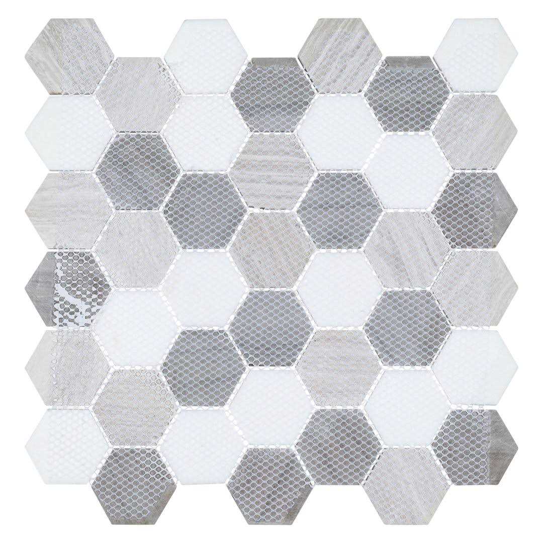 The Channing- Hexagon mosaic collection by Andover is crafted from fine natural stone. These statement tiles available in neutral shades of white, beige, brown, black, white, blue, and grey are composed of unique, classy 2 inch x 2 inch shaped tiles. With a polished finish and marble design, these mosaics are suitable for a wide range of styles and color schemes. Perfect for installation on residential or commercial floors, walls, backsplash, shower walls, bathrooms, accent walls, patio, outdoor walls, or almost anywhere a distinctive pattern is desired.