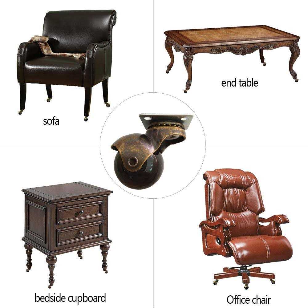 Ball Caster Wheel for Furniture Antique Swivel Caster with Top Plate 360 Degree Rotated Smooth and Quite Ball Bearing (Pack of 4) Ball-shaped Diameter