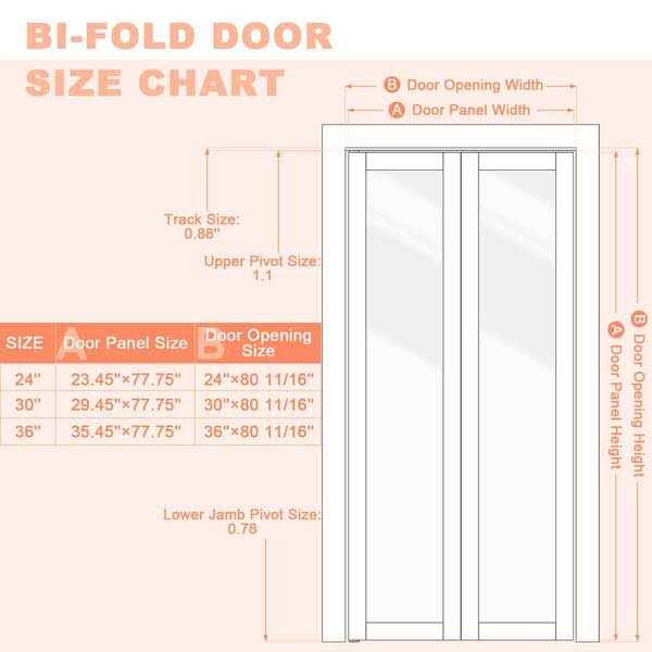 The product enhances the look of your closet, entryway, bedroom, or storage area with modern styling and is suitable for all decors. These doors fold into each other when opened to provide 90%+ access to your closets without taking up space within your room. The frosted glass design allows for privacy as well as natural light to enter your room. The bi-fold doors are durable and easy to install. Color: white.