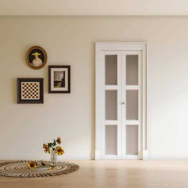 Ark Design 30 in. x 80 in. 3-Lite Frosting Glass MDF White Finished Closet Bi-Fold Door with Hardware