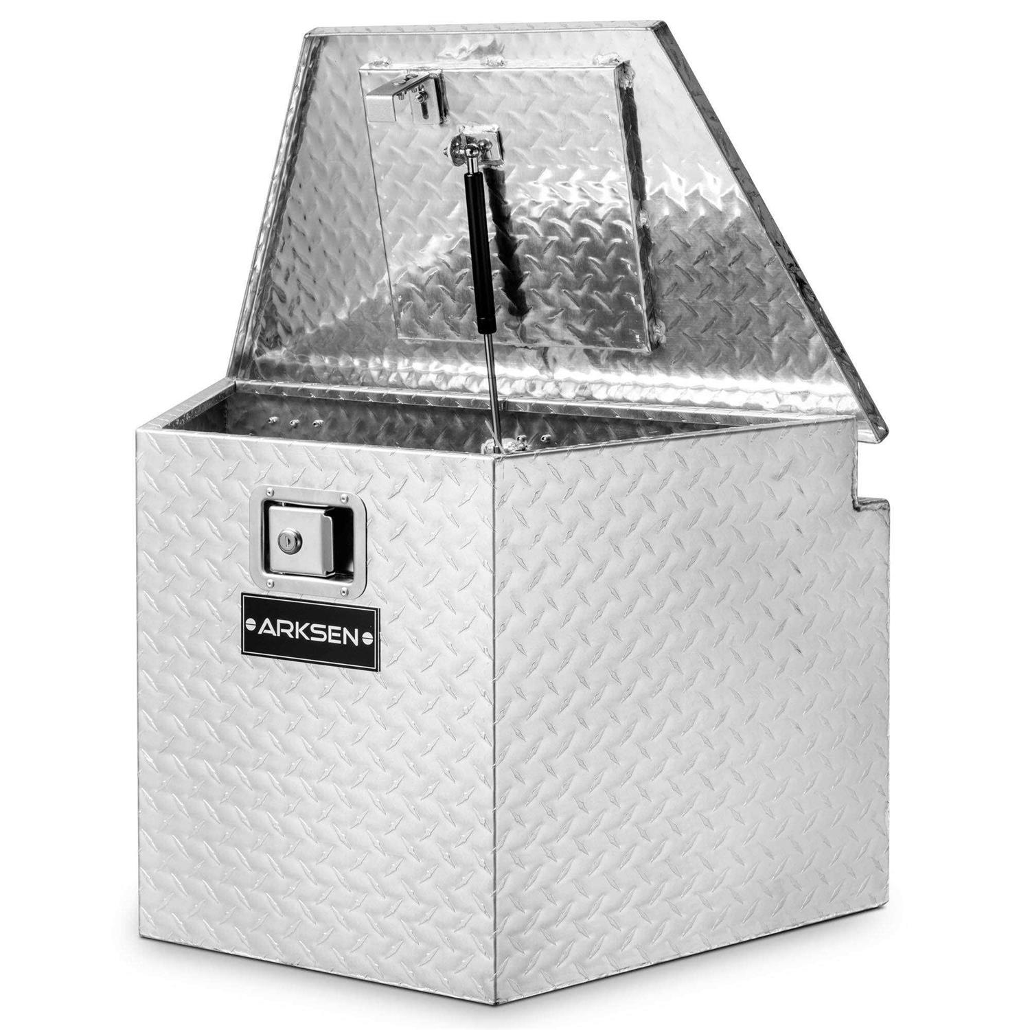 Arksen Diamond Plate Aluminum Trailer Tongue Box Pickup Truck Tool Box Storage Organizer With Lock Key