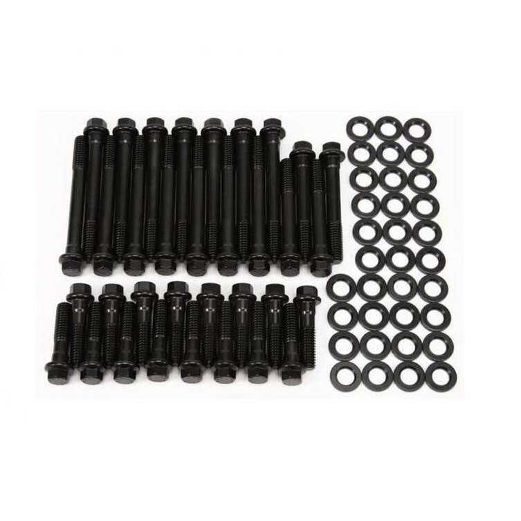 It is for good reason that virtually every top professional engine builder relies on ARP Pro Series head studs for their all-out competition powerplants. Simply stated, there’s not a better stud set up on the market today. For openers, ARP uses a premium grade 8740 Alloy that is rated far superior to aircraft quality. Then each stud is placed vertically in special racks and precisely heat tTreated to 200,000 Psi. This procedure ensures complete heat penetration and the results are far superior to those lesser quality studs from other manufacturers who just dump pieces in a basket and hope for the best. You will also note that ARP offers specially undercut studs for several engines. This procedure (done only to the shorter studs) more equalizes the stretch of both studs, which makes for a more consistent clamping force – and one that compensates for head gasket compression when the cylinders are installed. This helps prevent blown head gaskets, and assures optimum sealing! ARP head stud kits are available with your choice of conventional hex nuts or compact 12-point nuts.