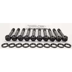Far superior to any other main bolts available for use in competition engines ARP main bolts are designed to meet the exacting standards and demands of professional engine builders. Forged from 8740 chrome moly steel all ARP main bolts feature a reduced wrenching head large underhead radius and rolled threads for the utmost in reliability. The threads are rolled after heat-treating which gives them about 2000% better fatigue strength than most main bolts that are threaded prior to heat-treating. The popular High Performance Series is rated at 180000 psi and is a premium replacement for OEM fasteners. Pro Series main bolts are application-specific rated at 200000 psi and designed for use in competition engines. Hardened parallel-ground washers are included with each kit. The engineers at ARP spent quite a bit of time developing these highly effective unique oil pan studs. Theyre designed to make it as easy as possible to install a pan and seal it properly. Youll note that the studs have a radiused bullet nose that serves to locate the pan rails then allow the nuts to be easily installed without the worry of cross-threading. For those who prefer bolts ARPs got you covered too.