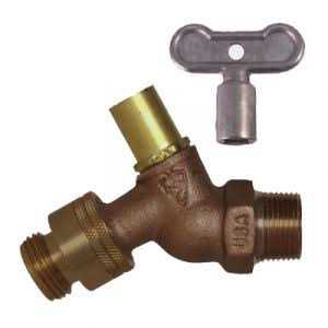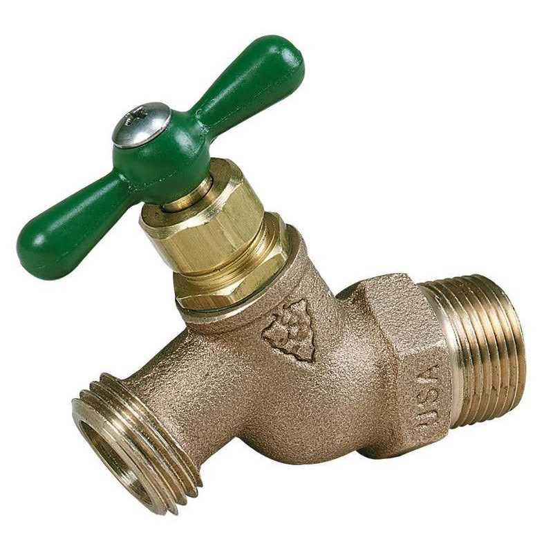 No-Kink Hose Bibb, Heavy Duty, 1/2 MIP x 3/4 Inch Hose, Red Brass. Size: 1/2 MIP X 3/4 Inch hose. Heavy pattern rough brass stuffing box design. Male iron pipe by hose connection. O-ring bonnet and coated tee handle. No-kink. Lead free.
