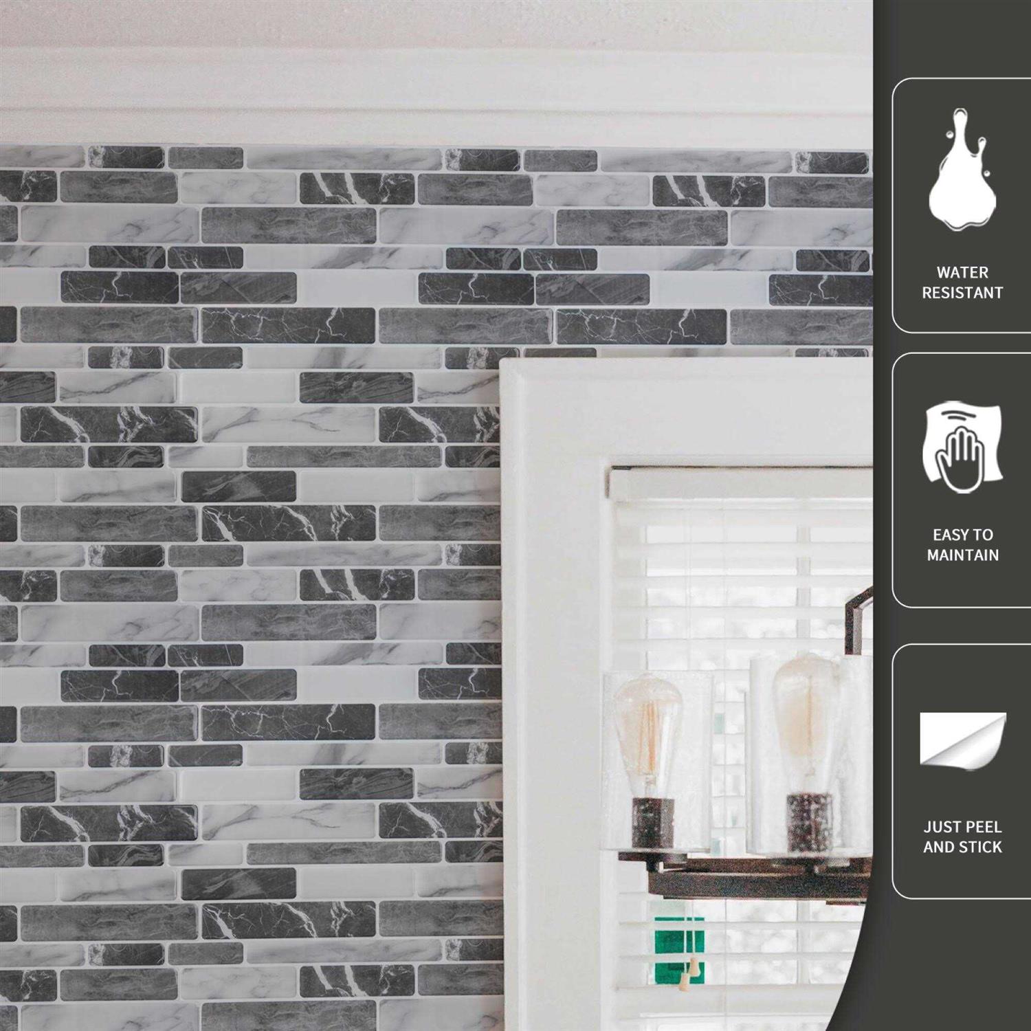 Art3d 10-Sheet Self Adhesive Backsplash Tile 12 in. x 12in. Marble Design – Grey