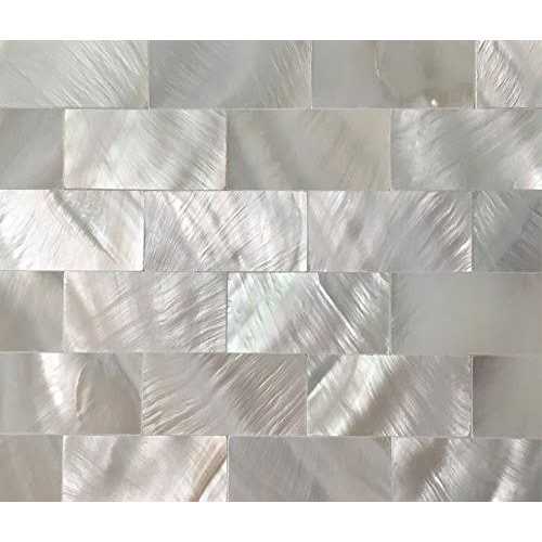 Premium quality genuine mother of pearl tiles Natural textured and mesh-mounted Size: 11.8 x 11.8 x 0.1 in. (300*300*2mm), Chip Size: 0.6″ * 1.2″ (15*30mm) Handcraft wall art of natural mother of pearl tile, as a natural product, the hues in mother of pearl may vary. Recommended Use: kitchen backsplash / bathroom walls / fireplace / shower wall tile