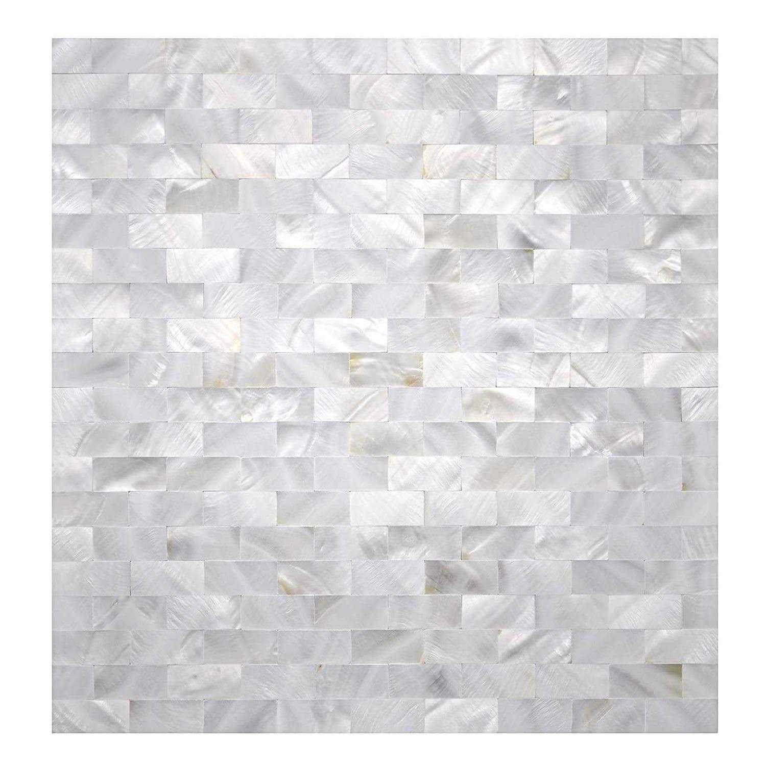 Art3d Peel and Stick Mother of Pearl Shell Tile for Kitchen Backsplash/Bathroom White Rectangle Seamless 6-Pack