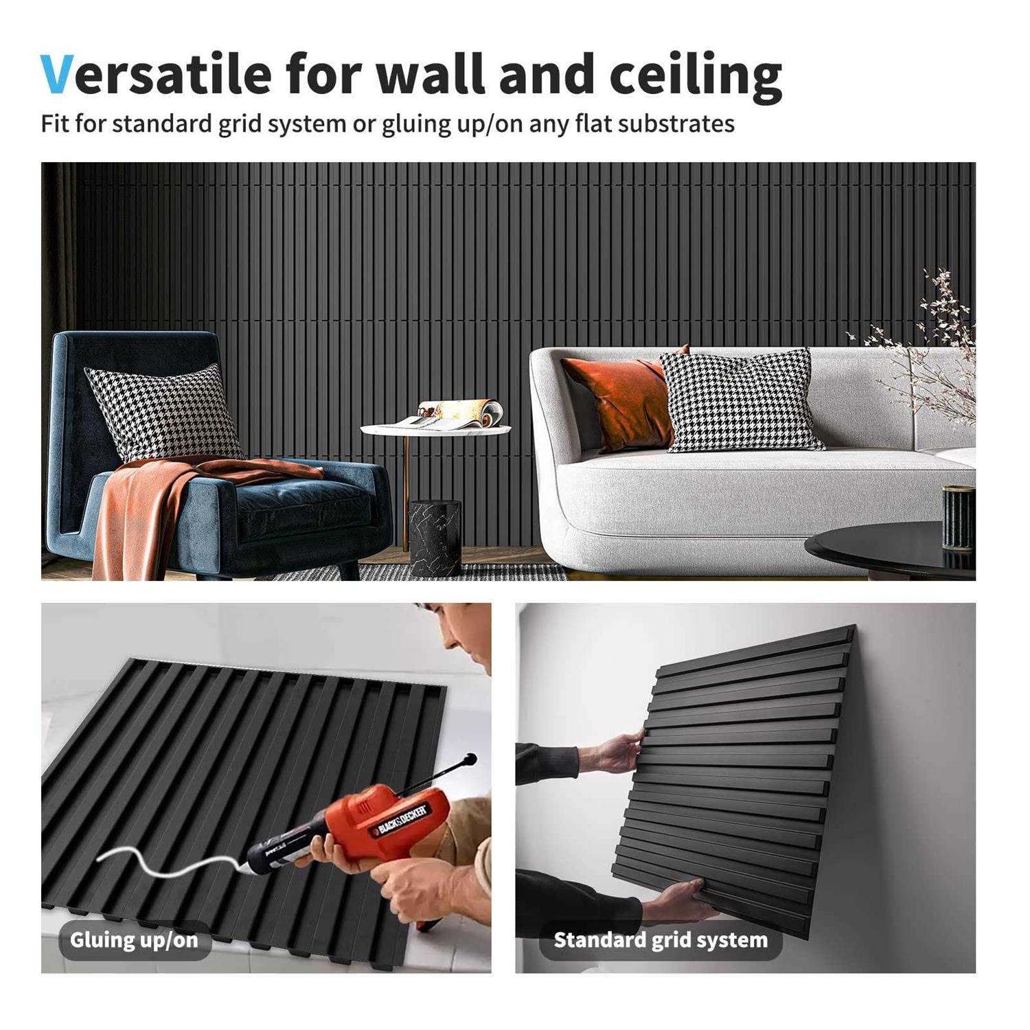 Art3d Slat Wall Panel 3D Fluted Textured Panel 12-Tile 197 x 197in – Black, 19.7 x 19.7in. A10064BK